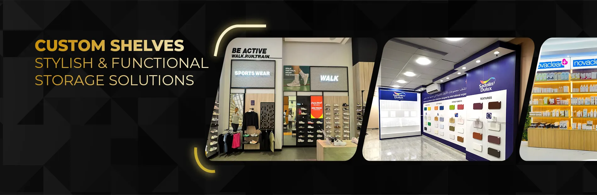 At Speedline Media & Advertising, we design and manufacture high-quality custom shelves in Qatar that combine functionality with style. Whether for retail stores, offices, exhibitions, or commercial spaces, our shelving solutions are built to enhance your space while showcasing your products effectively.